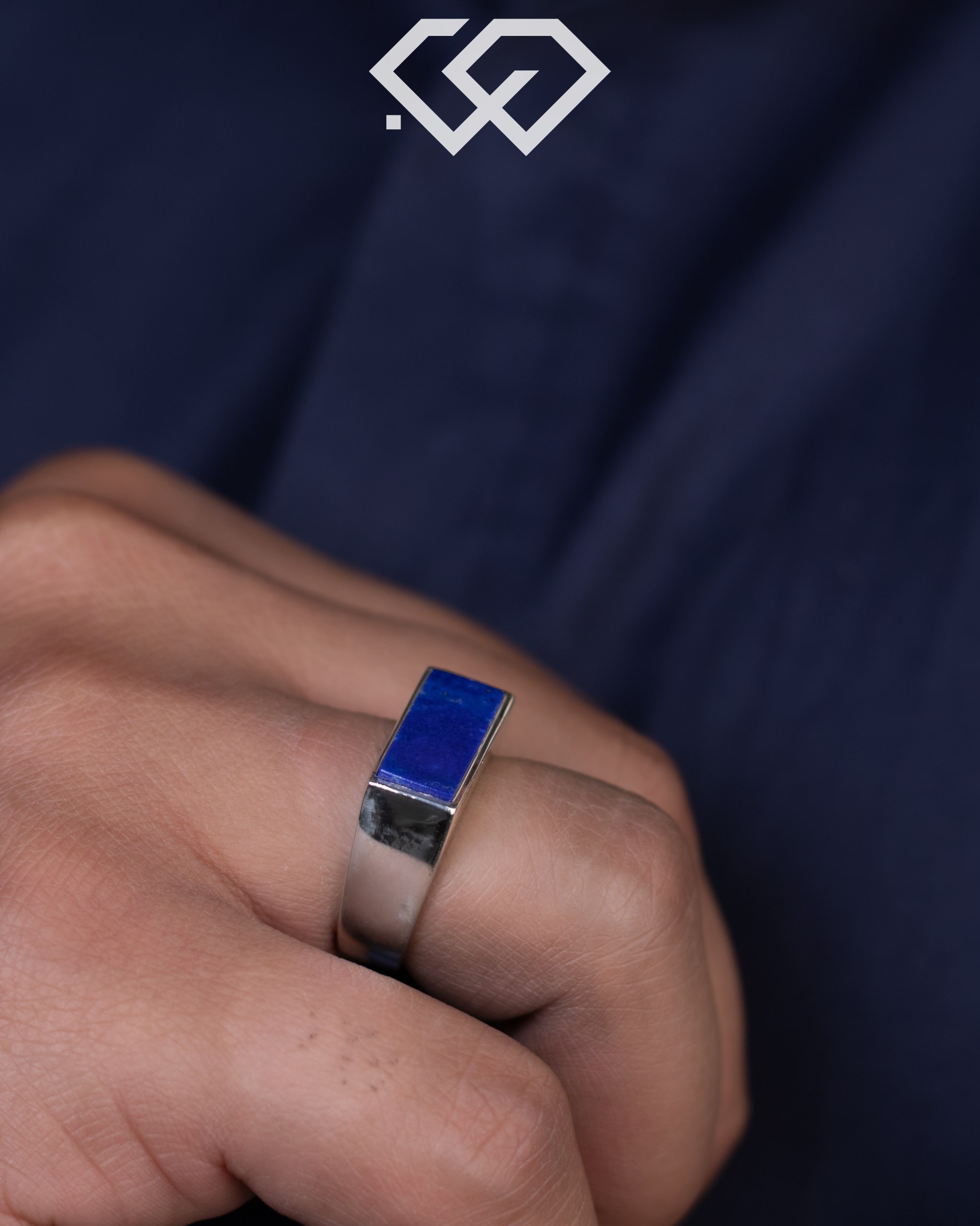 خانه نقره انگشتر مردانه نقره حلقه اسپورت با نگین لاجورد